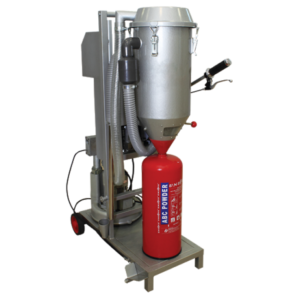 Các thành phần của máy này với các phụ kiện là đủ để sản phẩm nào và điền vào tất cả các bình chữa cháy xách tay từ 1 kg lên đến 12 kg và các thiết bị chữa cháy 50 kg di chuyển bổ sung. Khi sử dụng một bể chứa bột lớn hơn, nó có thể để trống và nạp lại các thiết bị chữa cháy lên đến 250 kg.