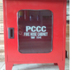 Tủ PCCC được sơn tĩnh điện màu đỏ, chất liệu thép, có kính nhìn xuyên, được in dòng chữ đặc trưng của ngành PCCC trên kính.